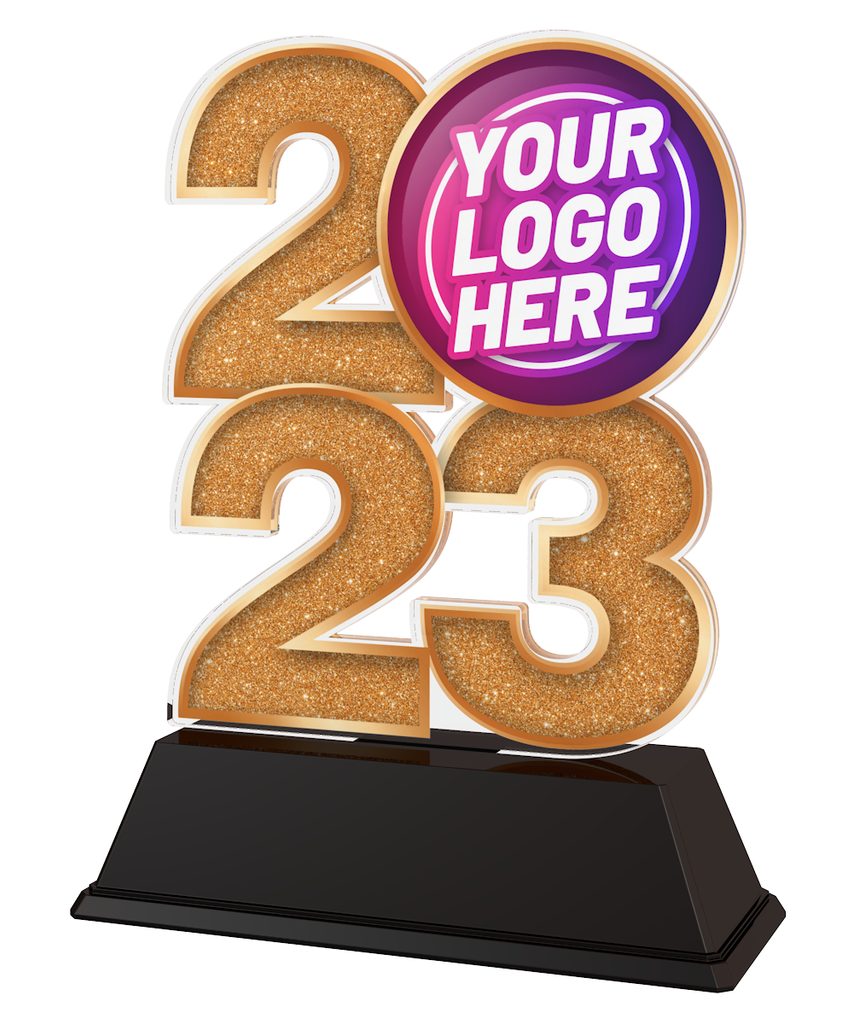 The 2023 Custom Made Acrylic Award is manufactured with your logo. It is printed as part of the trophy, not a printed insert. A very clever piece of memorabilia to remember the current year. As we produce to order we can make for any year gone past you may wish to celebrate. Please let us know which year when you place your order.  You can also choose from a sparkly gold, silver or bronze finish.