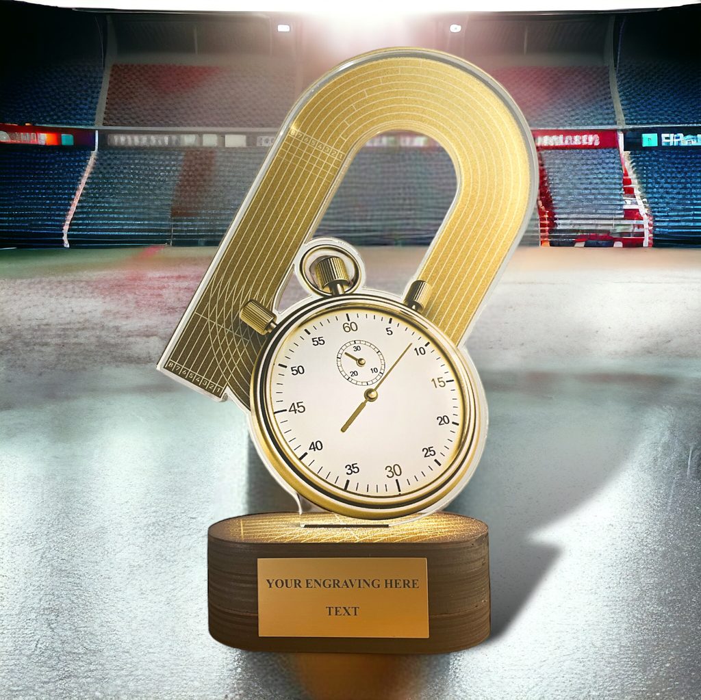 Introducing the modern and innovative Trophy award that is guaranteed to impress. Boasting a completely unique concept, this trophy is made from a combination of bevelled printed acrylic elegantly mounted on a specially designed sloping base of sustainable birch wood with a printed finish that enhances its overall aesthetic appeal.