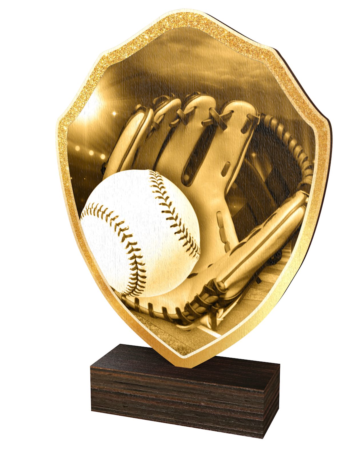 The Arden Classic Baseball Real Wood Shield Trophy is an eco friendly award made from 1/8" thick natural birch plywood, mounted on a 25/32" thick wooden base. A sustainable award that is part of a collection designed and manufactured in our own factory. Not only for the environmentally conscious, this trophy will prove popular in any presentation.