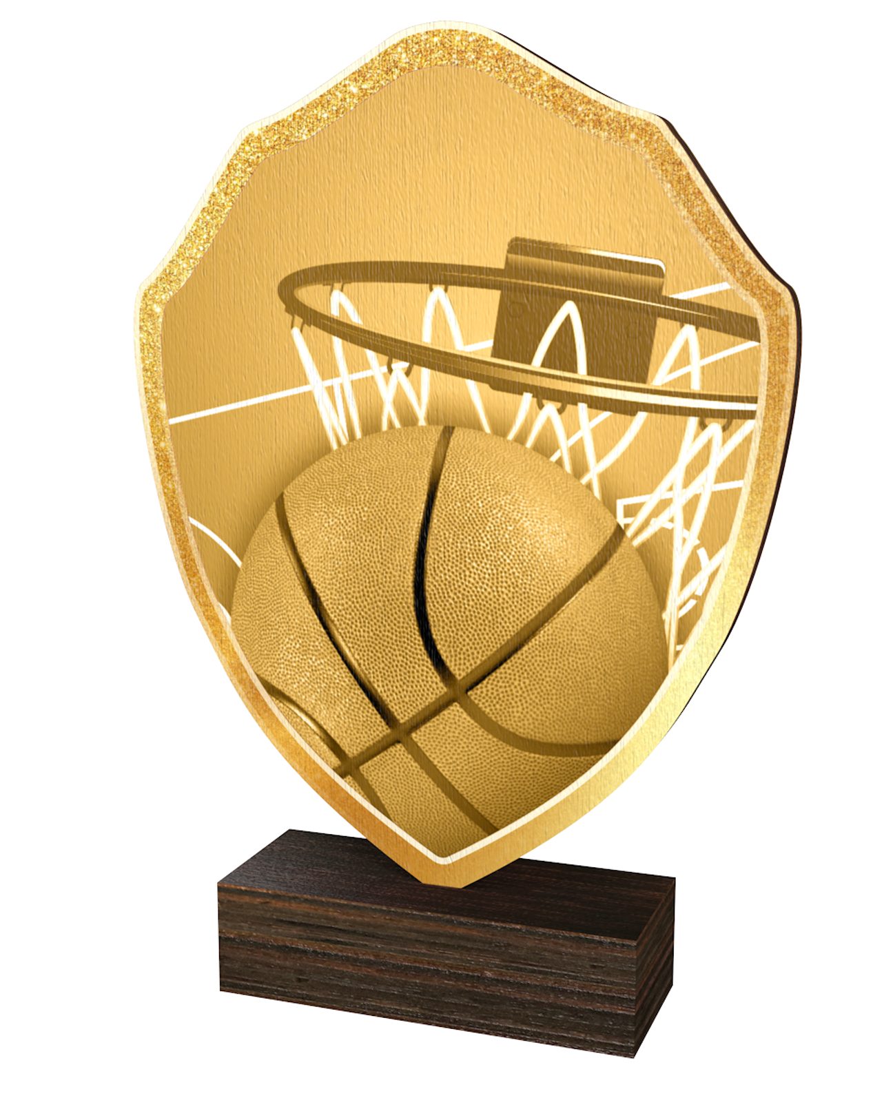 The Arden Classic Basketball Real Wood Shield Trophy is an eco friendly award made from 1/8" thick natural birch plywood, mounted on a 25/32" thick wooden base. A sustainable award that is part of a collection designed and manufactured in our own factory. Not only for the environmentally conscious, this trophy will prove popular in any presentation.
