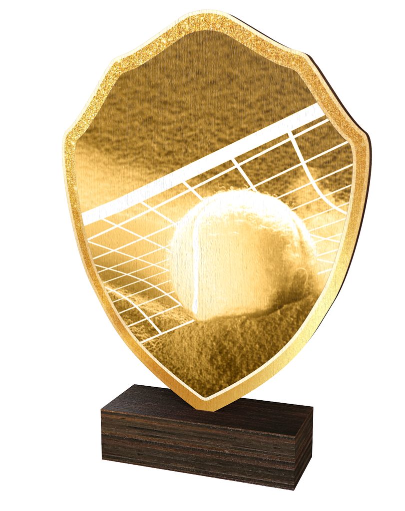 The Arden Classic Tennis Real Wood Shield Trophy is an eco friendly award made from 1/8" thick natural birch plywood, mounted on a 25/32" thick wooden base. A sustainable award that is part of a collection designed and manufactured in our own factory. Not only for the environmentally conscious, this trophy will prove popular in any presentation.