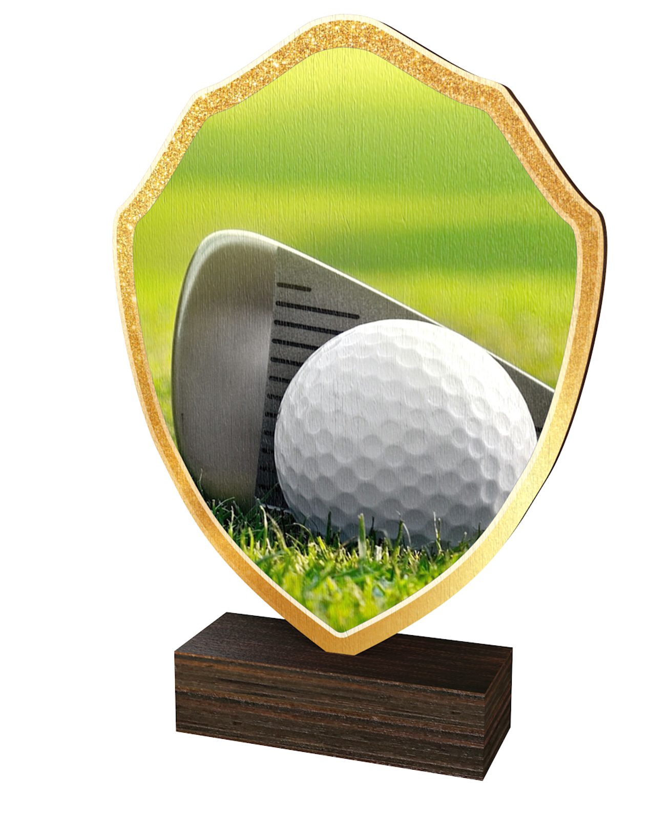 The Arden Golf Real Wood Shield Trophy is an eco friendly award made from 1/8" thick natural birch plywood, mounted on a 25/32" thick wooden base. A sustainable award that is part of a collection designed and manufactured in our own factory. Not only for the environmentally conscious, this trophy will prove popular in any presentation.