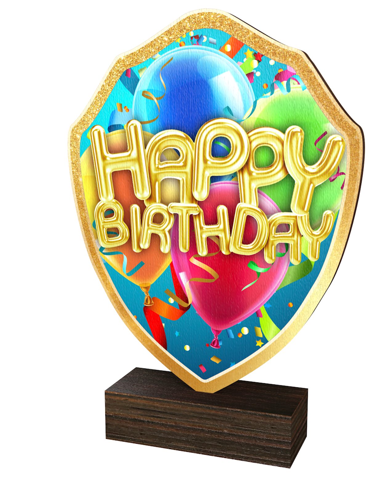 Arden Happy Birthday Real Wood Shield Trophy