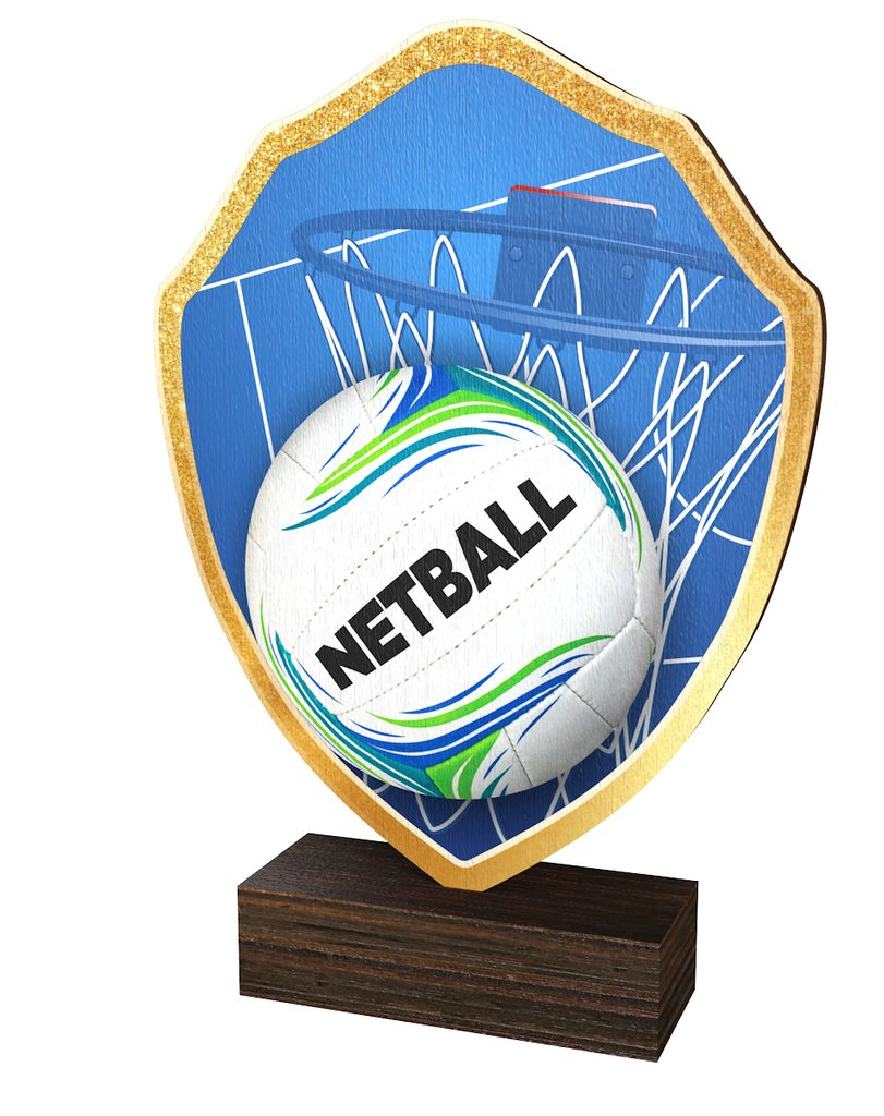 The Arden Netball  Real Wood Shield Trophy is an eco friendly award made from 1/8" thick natural birch plywood, mounted on a 25/32" thick wooden base. A sustainable award that is part of a collection designed and manufactured in our own factory. Not only for the environmentally conscious, this trophy will prove popular in any presentation.