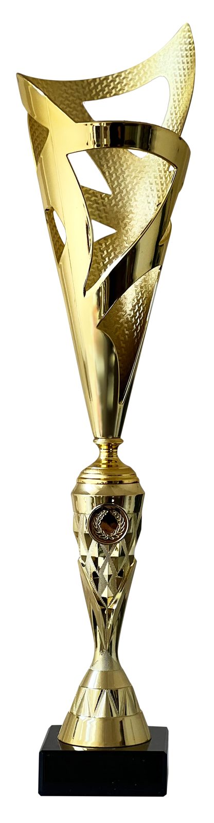 The Austin Gold Value Laser Cup is a super sized award at a very low price point. Made of plastic and mounted on a heavy black marble base.