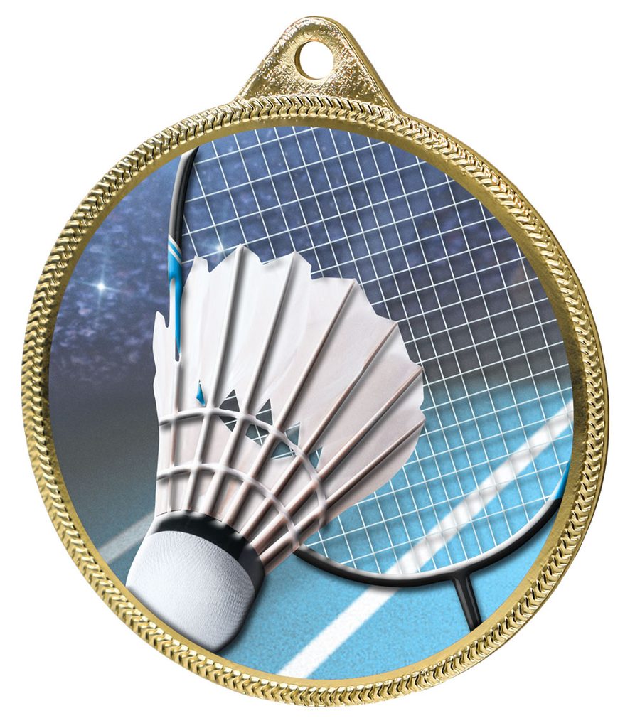 A truly superb new Badminton  2 1/8' medal made from iron. The medal has been printed using the latest 3D texture coating making the medal come alive with a vibrant raised full color print. Give your next presentation a lift with these contemporary medals which are sure to make eyes light up when received!