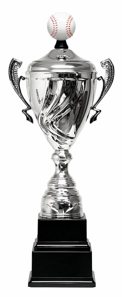 The Barbican Double Tiered Silver Baseball Cup is a unique trophy assembled in our own factory. A unique product is only available from Trophy Monster.