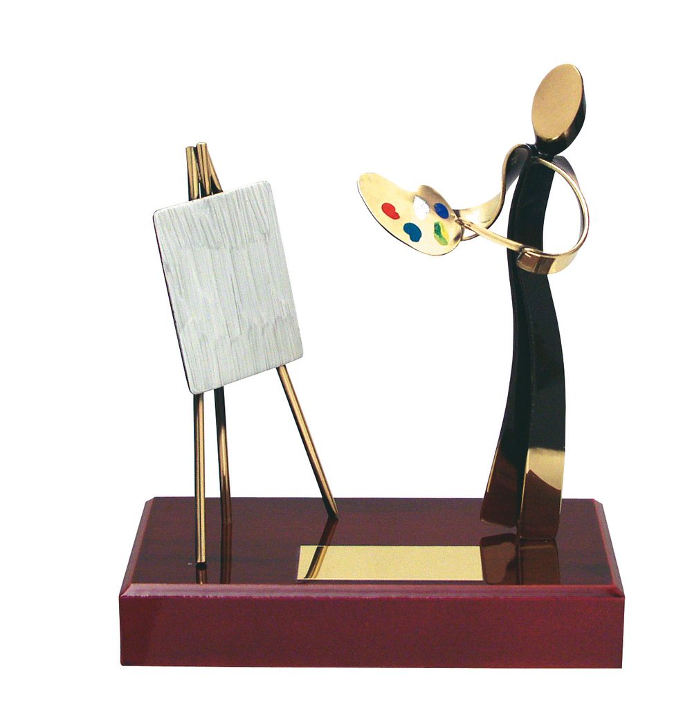The Barcelona Artist Trophy is an exclusive handmade metal award. It is mounted onto a high quality polished wooden base. The award is part of an exclusive collection of awards that are handmade in Barcelona, Spain. Each trophy is hand crafted from high quality metals, including brass, copper, nickel, pewter and steel and are set upon either wooden or marble bases.