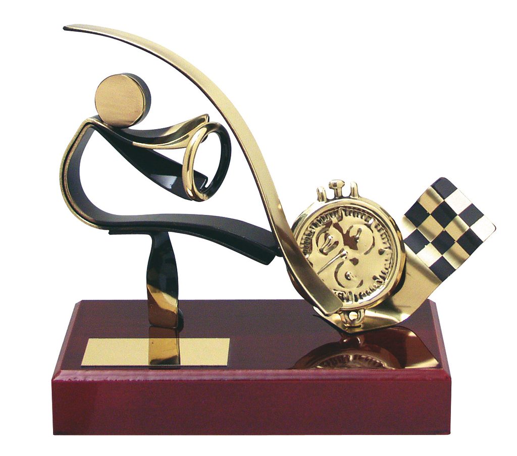 The Barcelona Motorsport Trophy is an exclusive handmade metal award. It is mounted onto a high quality polished wooden base. The award is part of an exclusive collection of awards that are handmade in Barcelona, Spain. Each trophy is hand crafted from high quality metals, including brass, copper, nickel, pewter and steel and are set upon either wooden or marble bases.