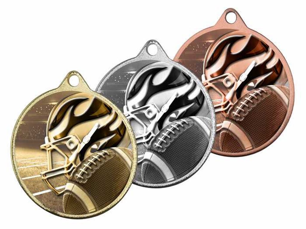 Gridiron Football Color Texture 3D Print Silver Medal