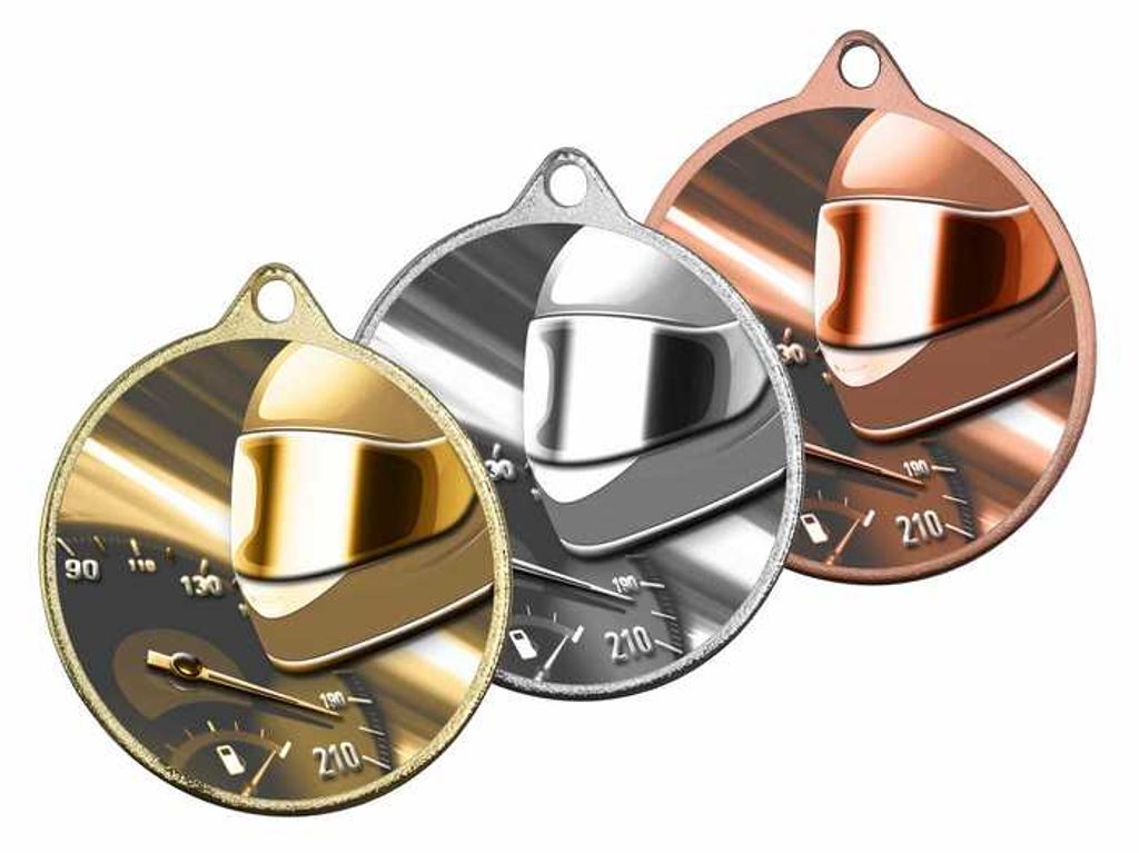 Motorsports Helmet and Flag Classic Texture 3D Print Gold Medal
