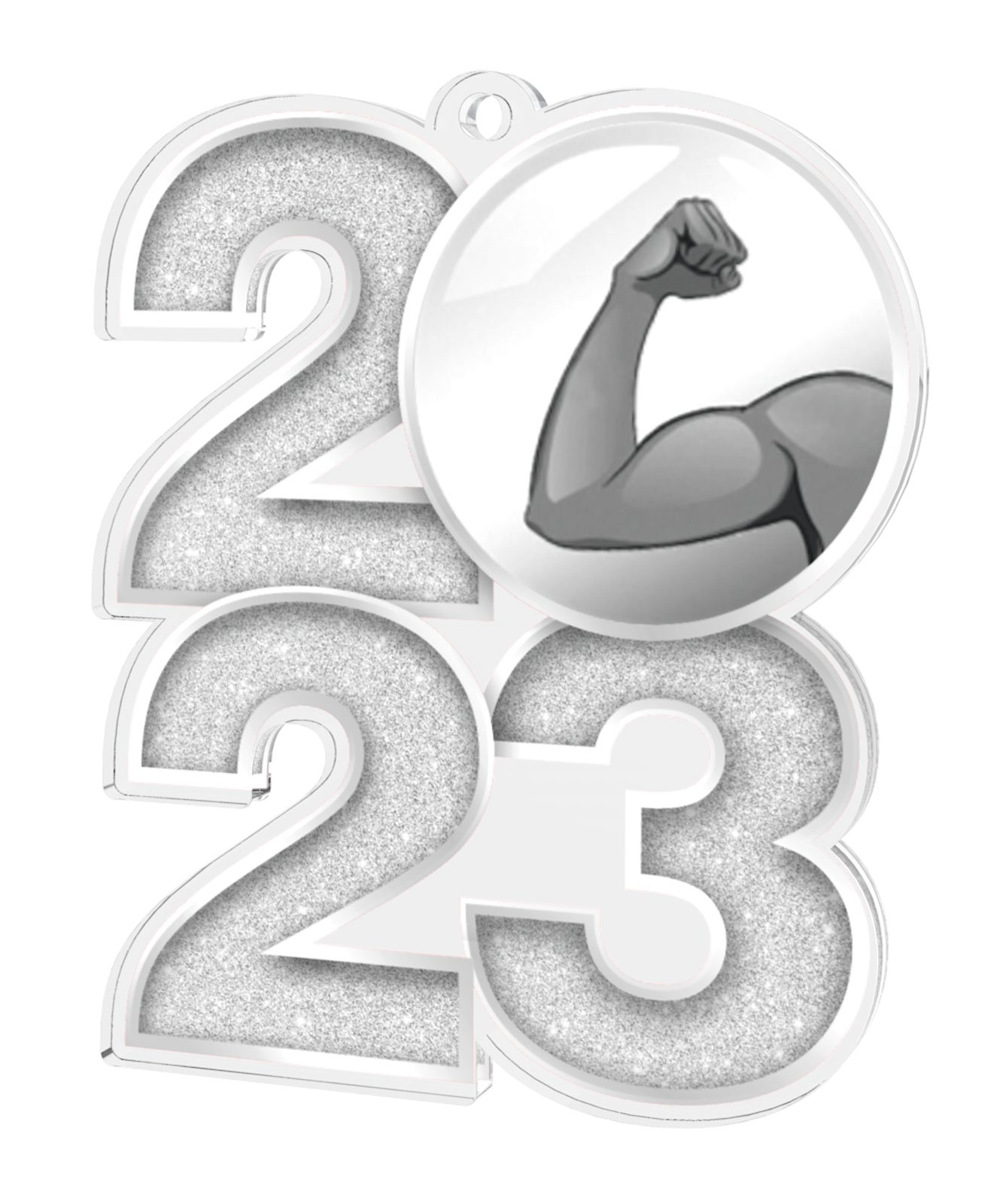 Bodybuilding Silver 2023 Acrylic Medal is part of a brand new exciting exclusive range. Made in a large size of 2 3/4" (h) x 2 1/2" (w).