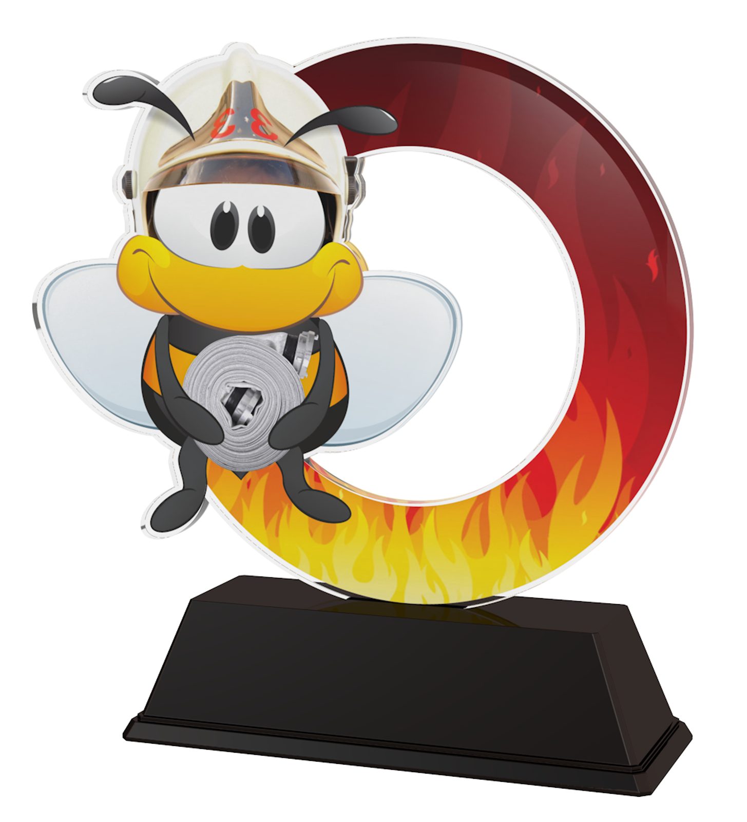 The Bumble Bee Kids Fire Fighting Trophy is the cutest in design for kids. Cut out to shape this trophy comes to life with a high quality full color print on the reverse side of the 5/32" thick acrylic mounted on a black PVC base.