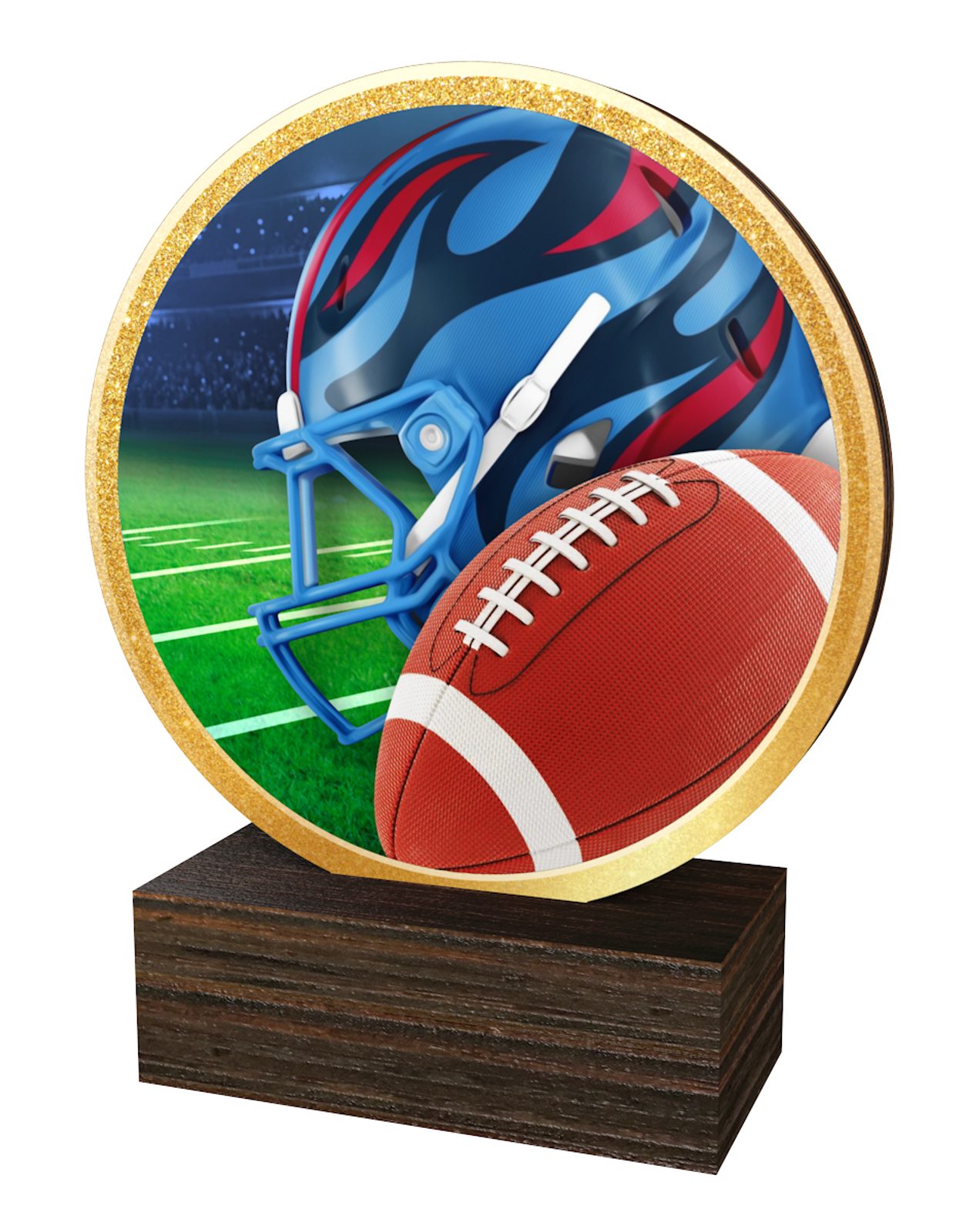 The Cedar Football Helmet Real Wood Shield Trophy is an eco friendly award made from 3 5/32" thick natural birch plywood, mounted on a 25/32" thick wooden base. A sustainable award that is part of a collection designed and manufactured in our own factory. Not only for the environmentally conscious, this trophy will prove popular in any presentation.