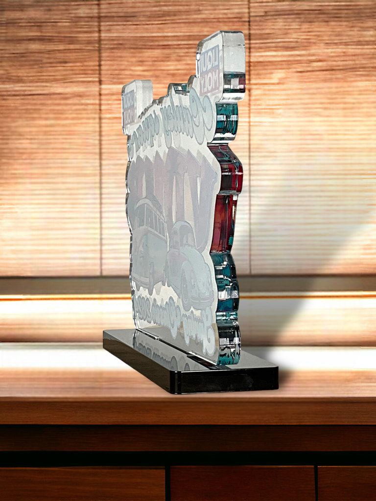 Best of all, we don't charge any set-up, proof, or origination fees. Our Creole Custom Made Acrylic Award is a popular choice for those who want a unique shape for their trophy. The shape is eye-catching and modern, and the acrylic is cut to shape and printed on the reverse for a stunning effect. The award can be mounted on a black or clear acrylic base, adding an extra touch of elegance.
