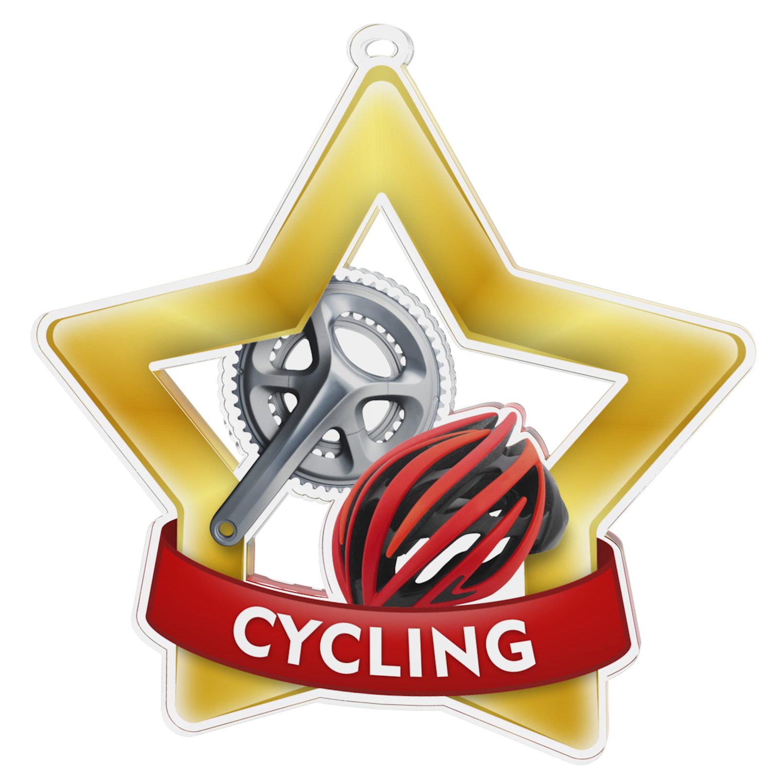 The Cycling Mini Star Gold Medal is part of a brand new exciting star range, designed in partnership with Trophy Monster. Based on the popular children's classic medal we have brought it up to date with innovation using contemporary images. We have also created two bigger sizes, the MAXI STAR and SUPER MAXI STAR.