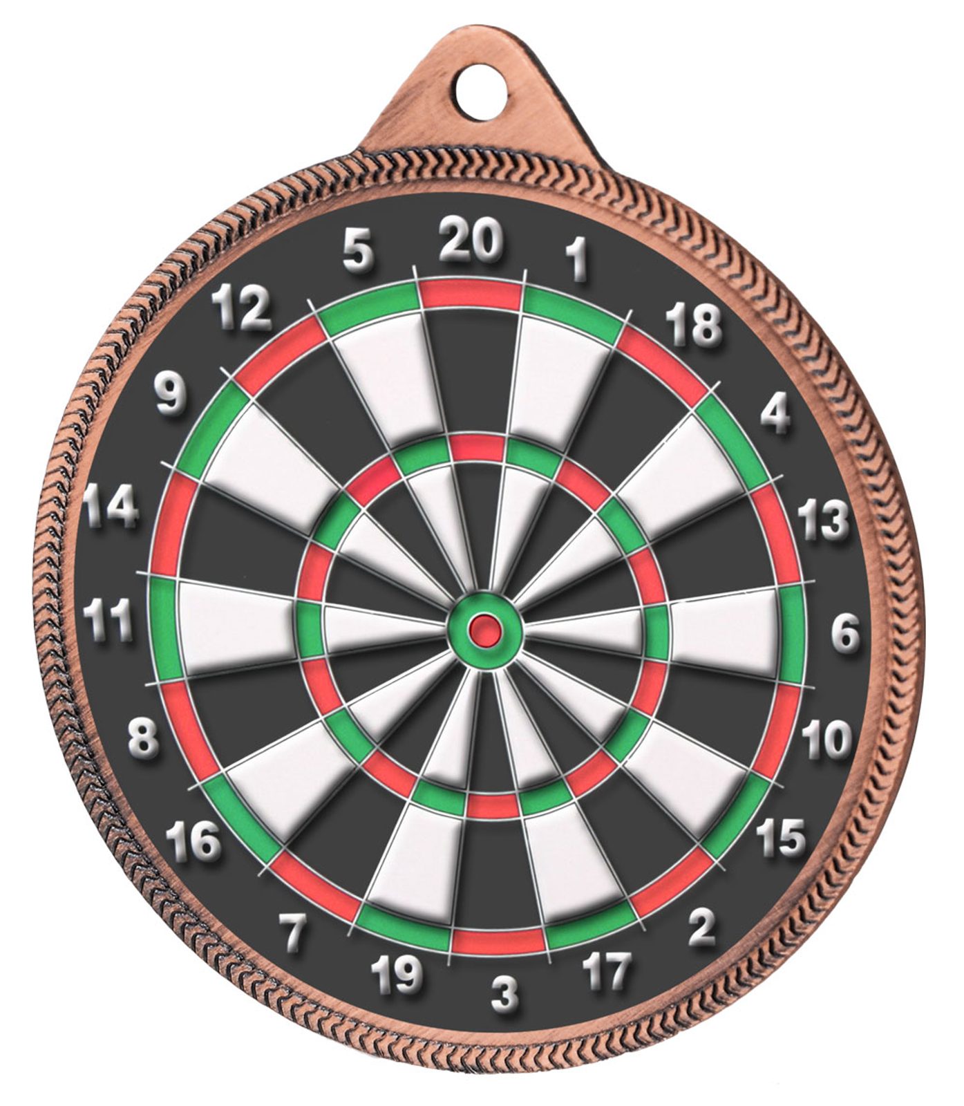 A truly superb new Darts 2 1/8" darts medal made from iron. The medal has been printed using the latest 3D texture coating making the medal come alive with a vibrant raised full color print. Give your next presentation a lift with these contemporary medals which are sure to make eyes light up when received!