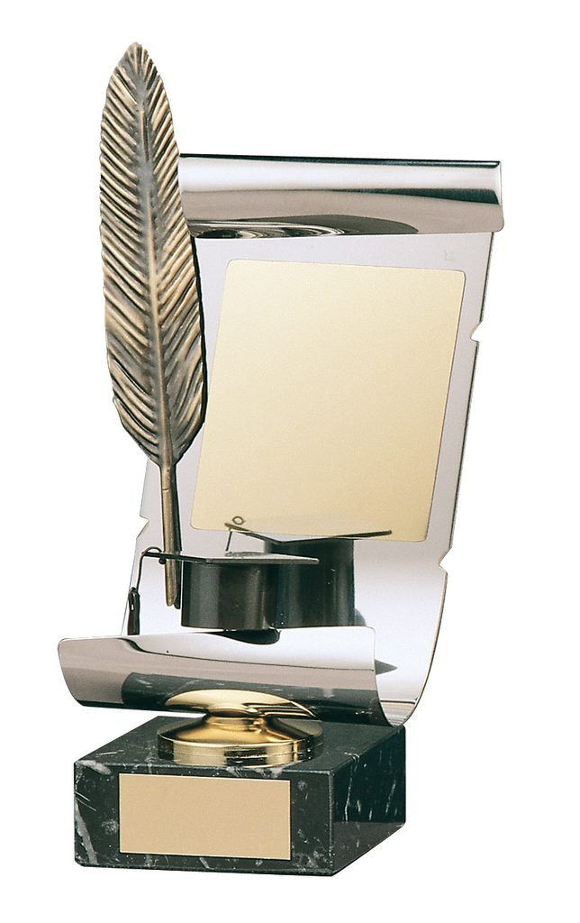 The Dickens Literature Trophy is an exclusive handmade metal award. It is mounted onto a high quality marble base. The award is part of an exclusive collection of awards that are handmade in Barcelona, Spain. Each trophy is hand crafted from high quality metals, including brass, copper, nickel, pewter and steel and are set upon either wooden or marble bases.
