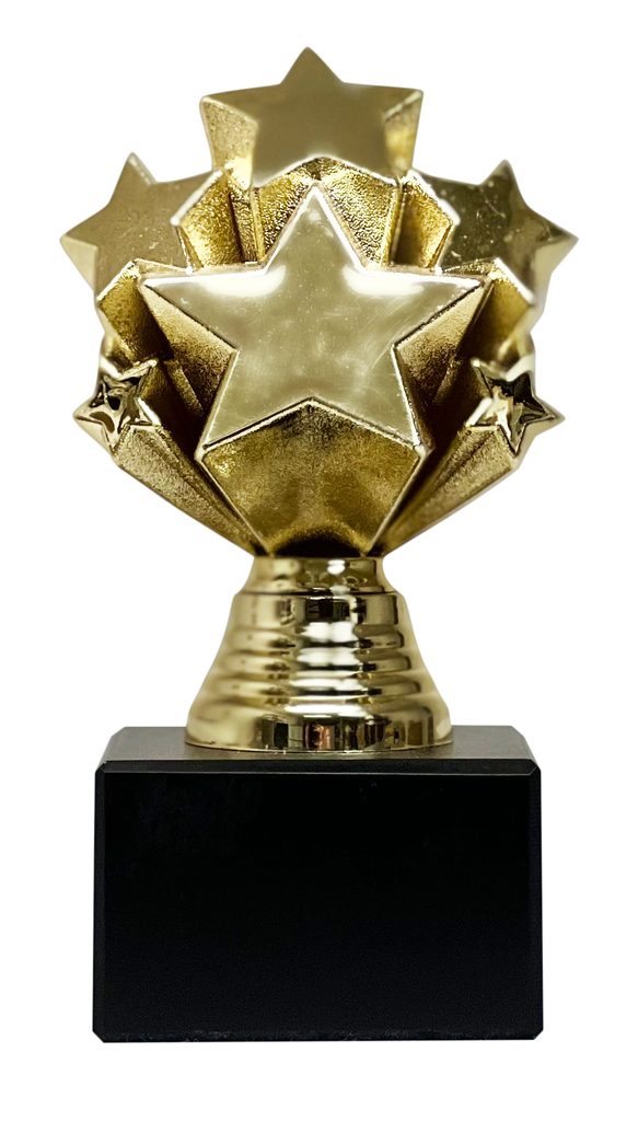 The size of the trophy is 5¾" and also comes with a FREE engraved self adhesive plate with text of your choice.