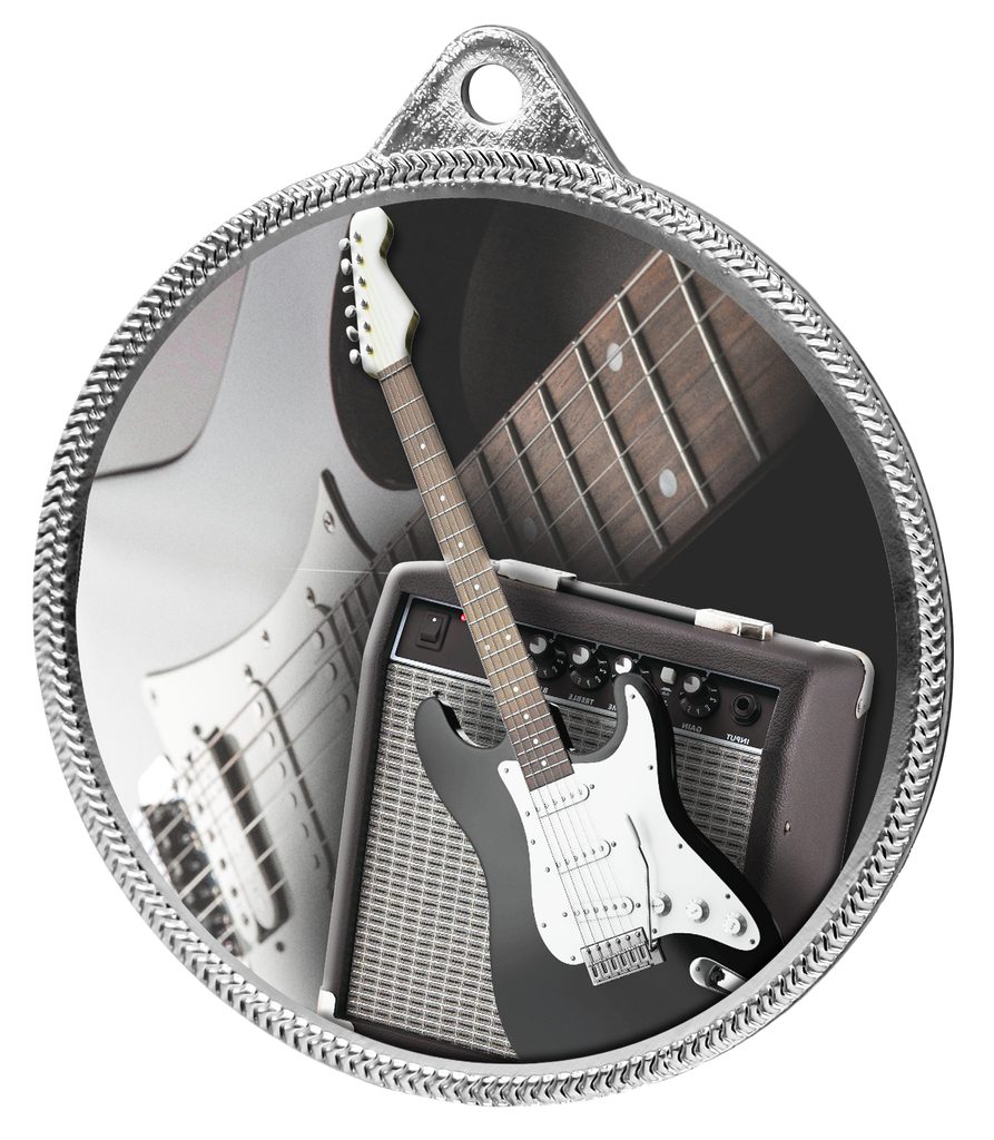 A truly superb new Electric Guitar 2 1/8" medal made from iron. The medal has been printed using the latest 3D texture coating making the medal come alive with a vibrant raised full color print. Give your next presentation a lift with these contemporary medals which are sure to make eyes light up when received!