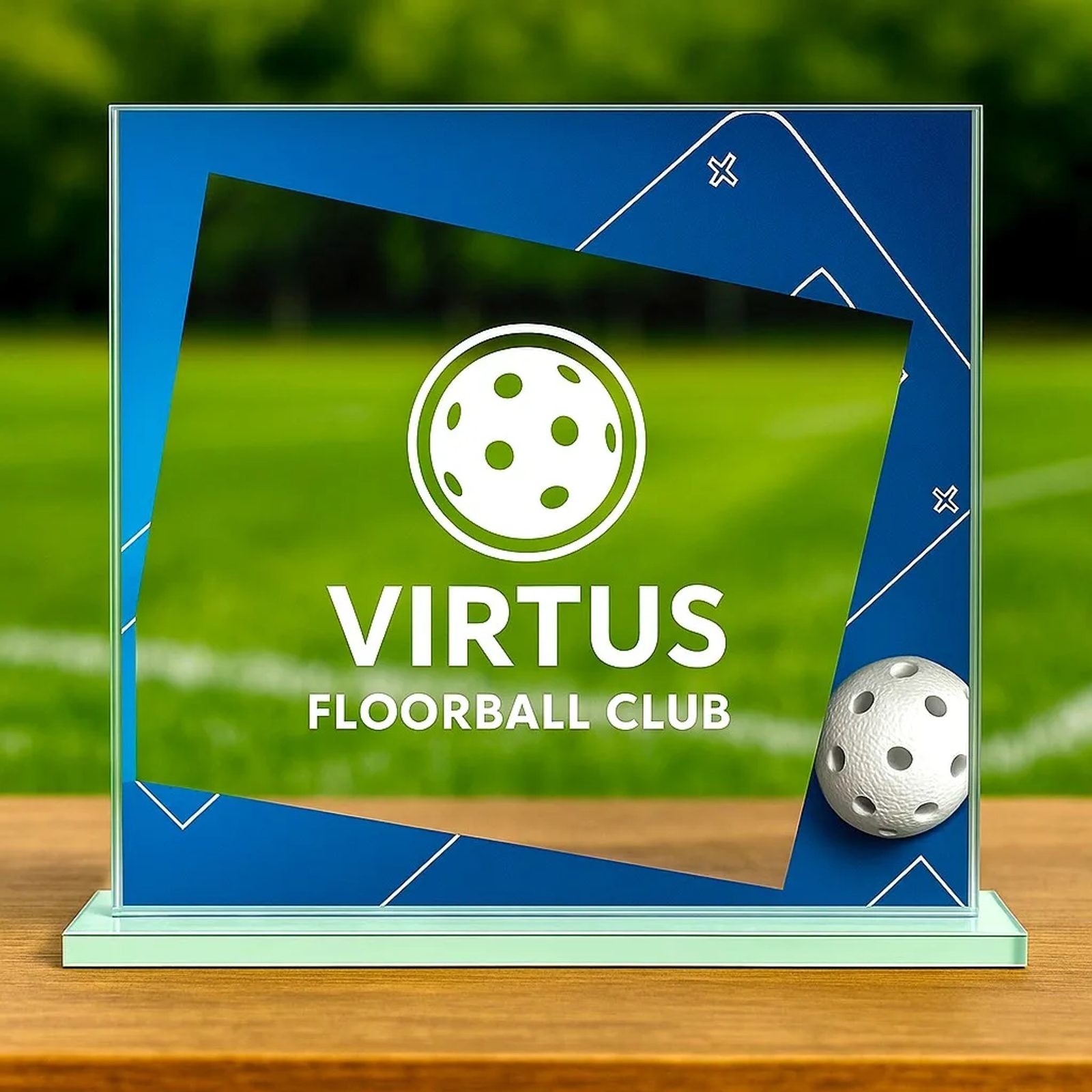 Celebrate every goal, assist, and championship win with the Eloise Floorball Color-Printed Glass Award. Crafted from ¼" thick premium glass, this award is available in 5 ¾", 6 ¾", and 7 ½" sizes. Featuring a vibrant full-color UV floorball design and a clear glass panel for your custom logo and text, it’s perfect for club matches, tournaments, player awards, and end-of-season presentations.