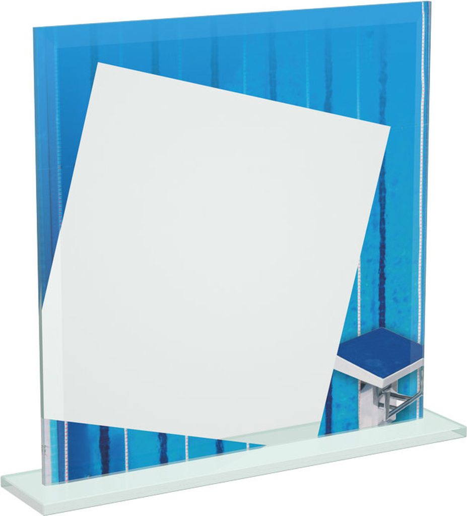 Celebrate every personal best, relay win, and podium finish with the Eloise Swimming Color-Printed Glass Award. Crafted from ¼" thick premium glass and available in 5 ¾", 6 ¾", and 7 ½" sizes, it features a vibrant full-color UV swimming design with waves, lanes, and stopwatch detail, plus a clear glass panel for your custom logo and text. Perfect for galas, club nights, county meets, and school championships.