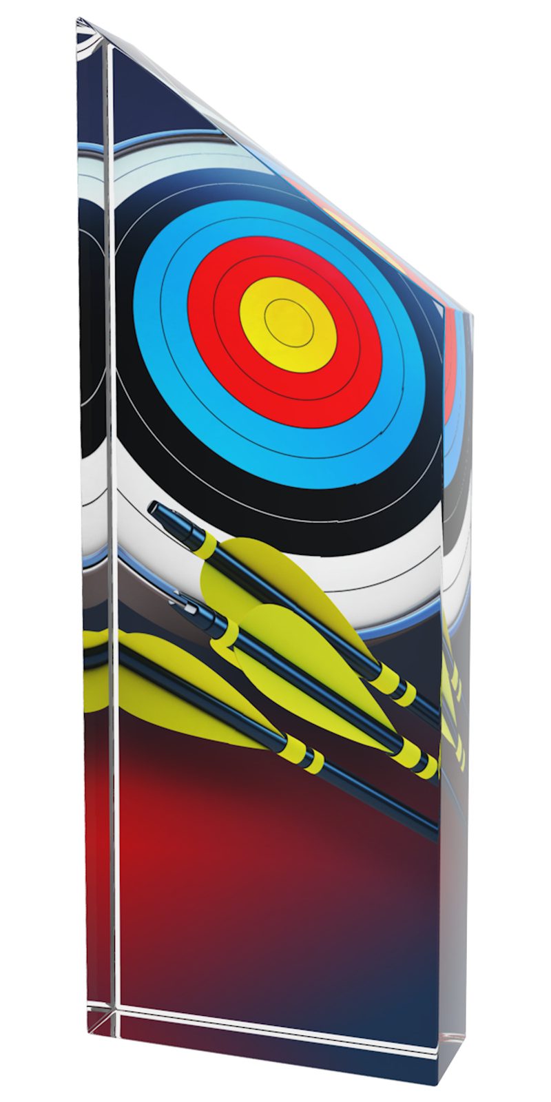 The Everest Archery Target Trophy is an impressive free standing award. This trophy features a high quality full color print on the reverse side of 1" ultra-thick acrylic.