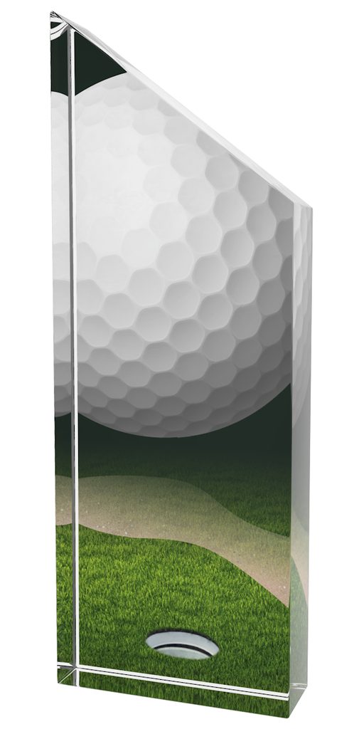 The Everest Golf Ball Trophy is an impressive free standing award. This trophy features a high quality full color print on the reverse side of 1" ultra-thick acrylic.