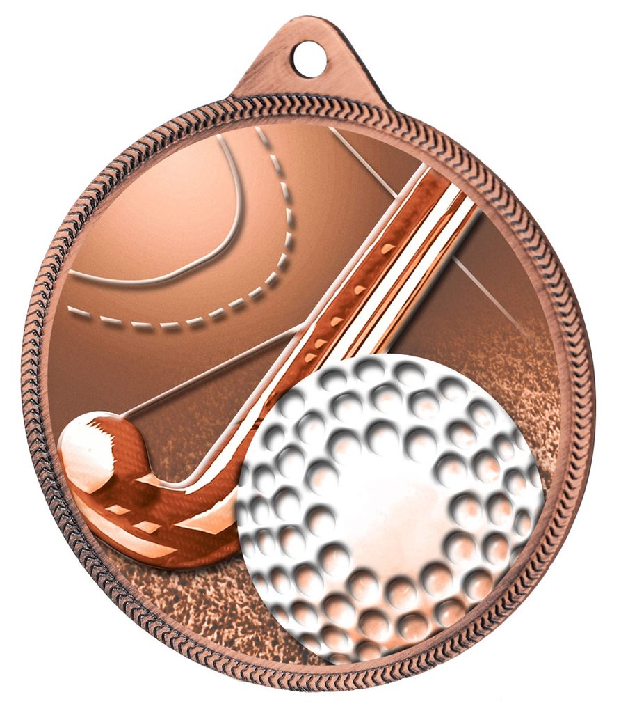 Field Hockey 3D Texture Print Full Color 2 1/8" Medal - Bronze