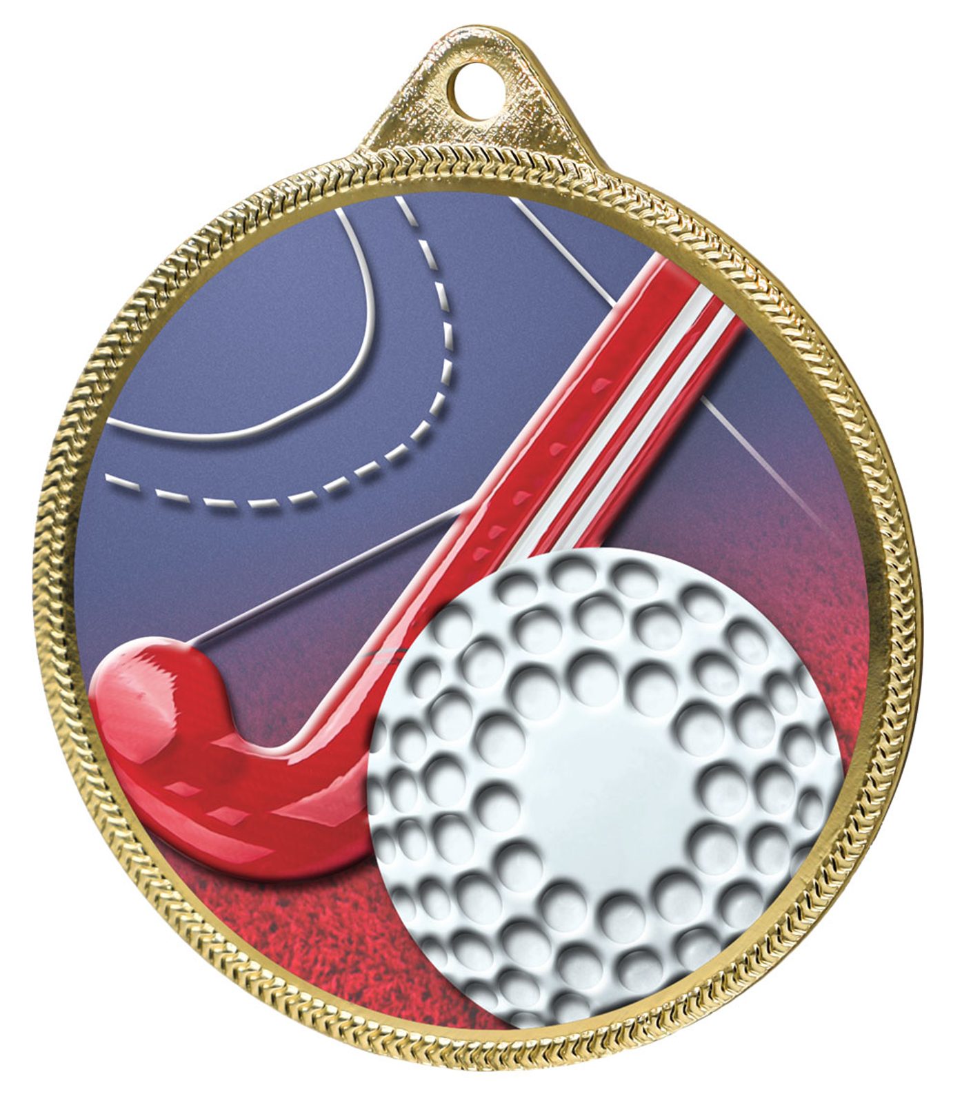 Field Hockey 3D Texture Print Full Color 2 1/8" Medal - Gold