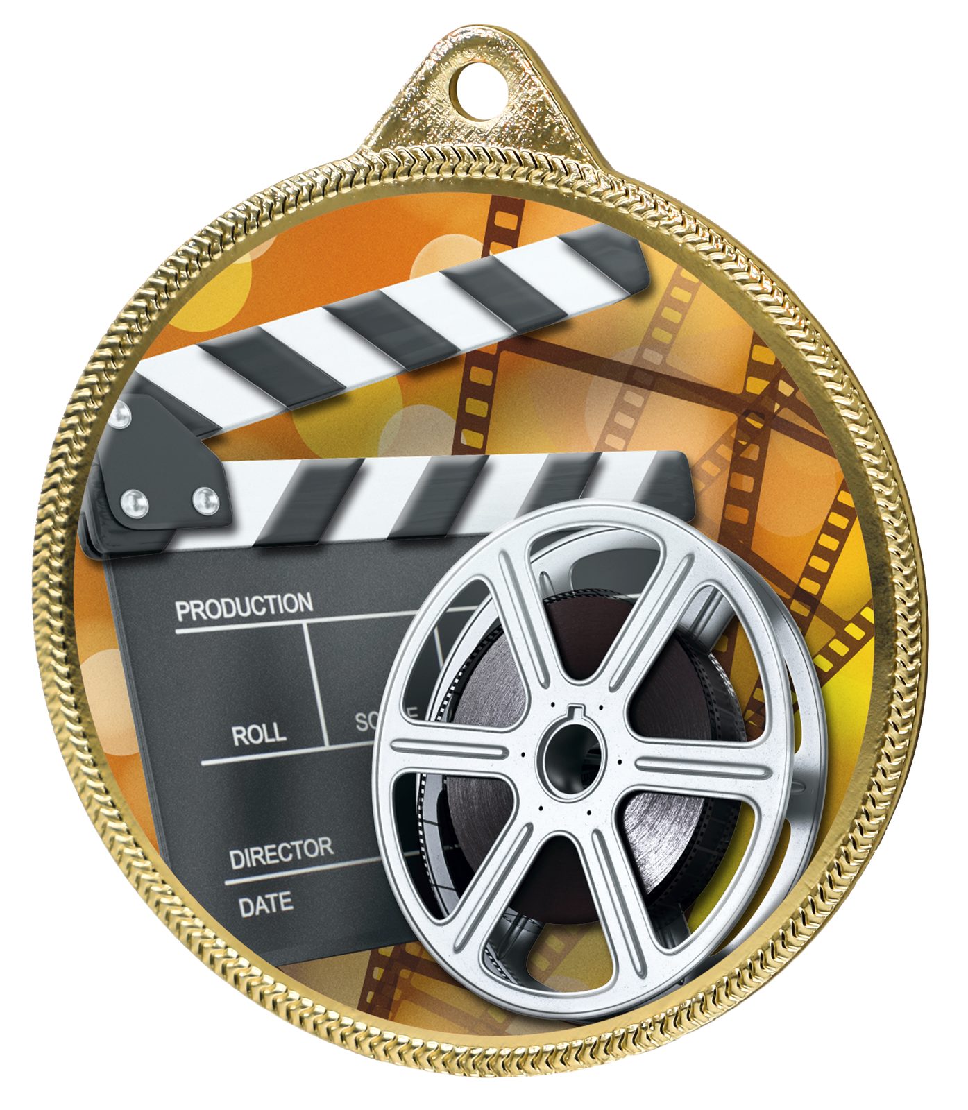 A truly superb new Film 2 1/8"  medal made from iron. The medal has been printed using the latest 3D texture coating making the medal come alive with a vibrant raised full color print. Give your next presentation a lift with these contemporary medals which are sure to make eyes light up when received!