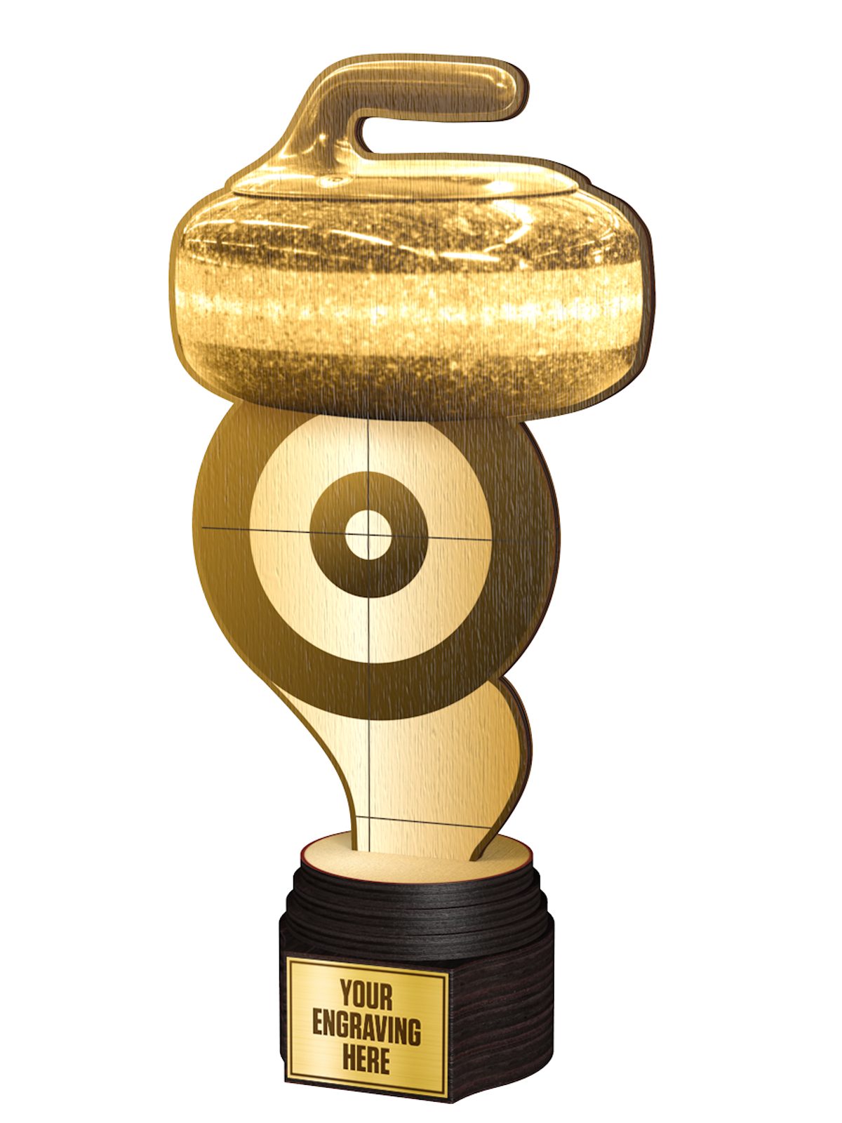 The Frontier Classic Real Wood Curling Trophy is an impressive eco friendly award made from 3/8" thick natural birch plywood, mounted on a thick wooden base. A sustainable product that is part of a collection designed and manufactured in our own factory. Not only for the environmentally conscious, this trophy will be the centrepiece in any presentation.