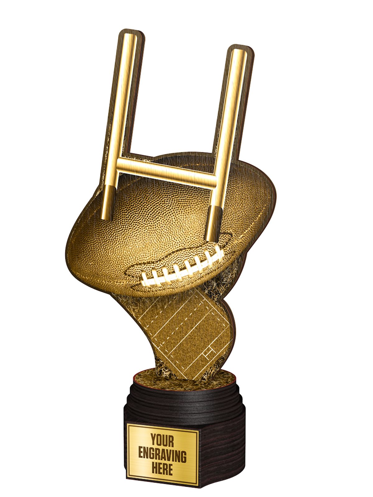 The Frontier Classic Real Wood Football Trophy is an impressive eco friendly award made from 3/8" thick natural birch plywood, mounted on a thick wooden base. A sustainable product that is part of a collection designed and manufactured in our own factory. Not only for the environmentally conscious, this trophy will be the centrepiece in any presentation.