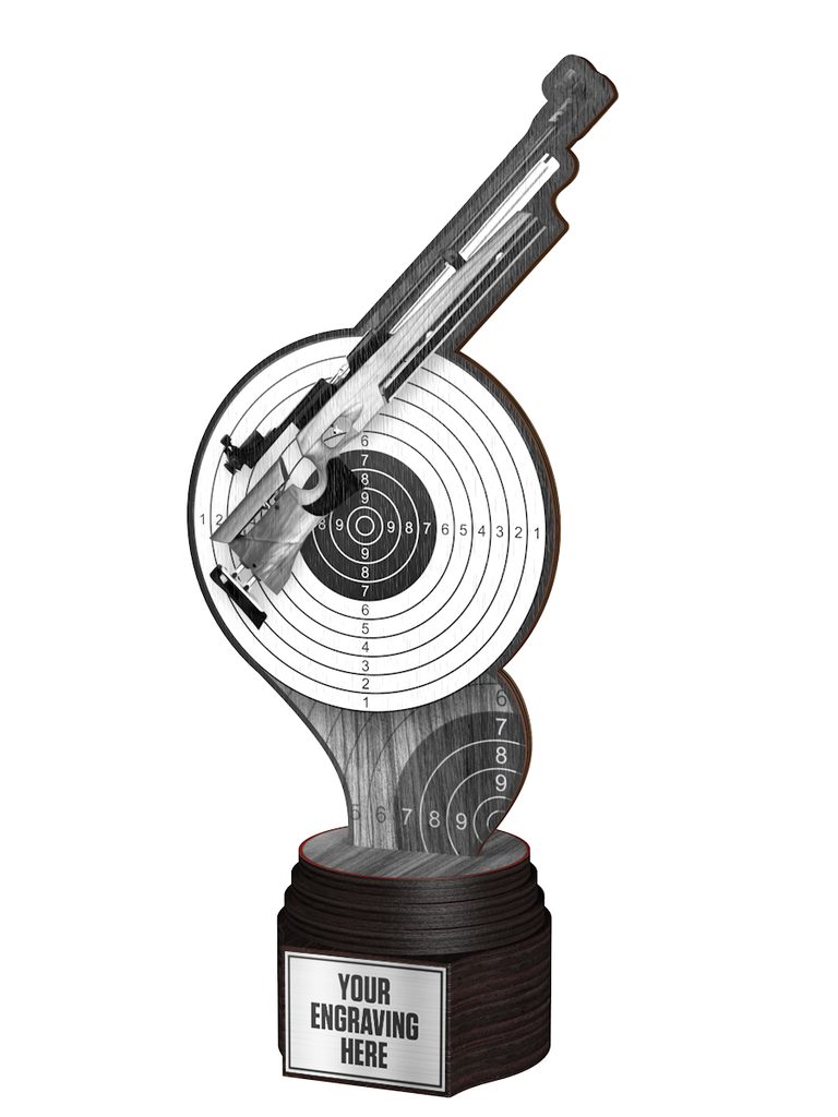 The Frontier Classic Real Wood Shooting Trophy is an impressive eco friendly award made from 3/8" thick natural birch plywood, mounted on a thick wooden base. A sustainable product that is part of a collection designed and manufactured in our own factory. Not only for the environmentally conscious, this trophy will be the centrepiece in any presentation.