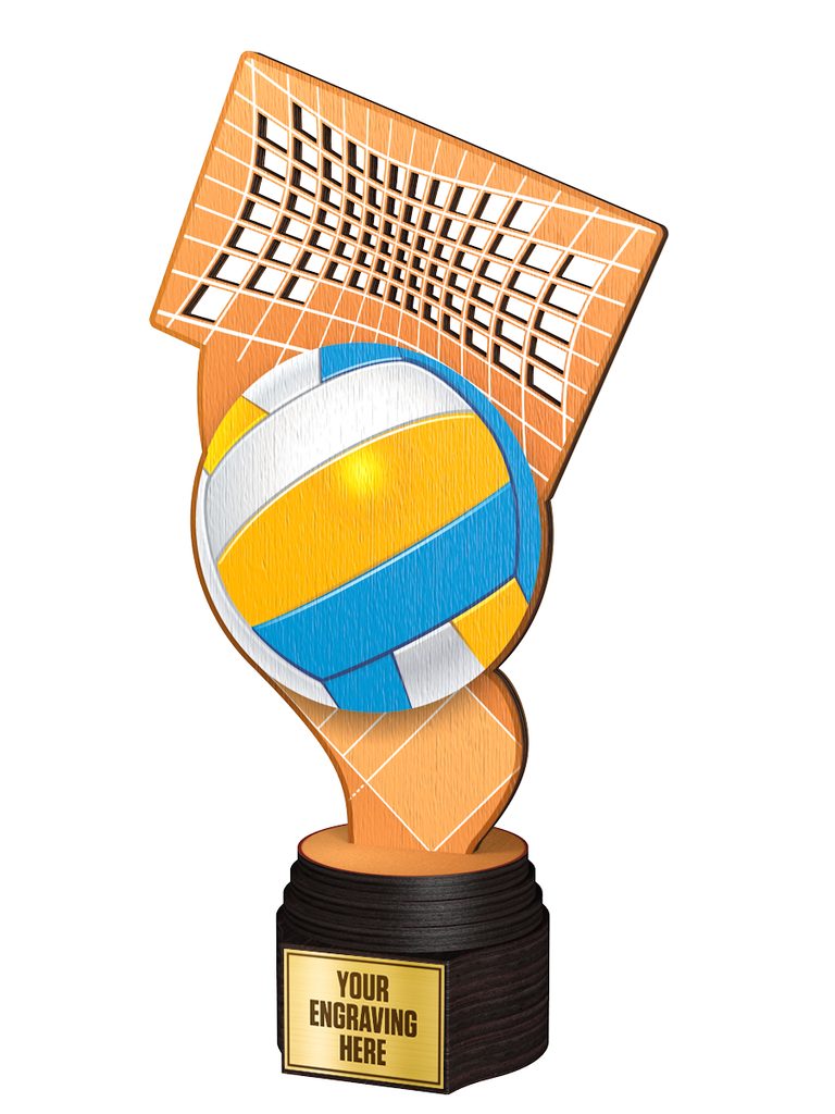 The Frontier Real Wood Volleyball Trophy is an impressive eco friendly award made from 3/8" thick natural birch plywood, mounted on a thick wooden base. A sustainable product that is part of a collection designed and manufactured in our own factory. Not only for the environmentally conscious, this trophy will be the centrepiece in any presentation.