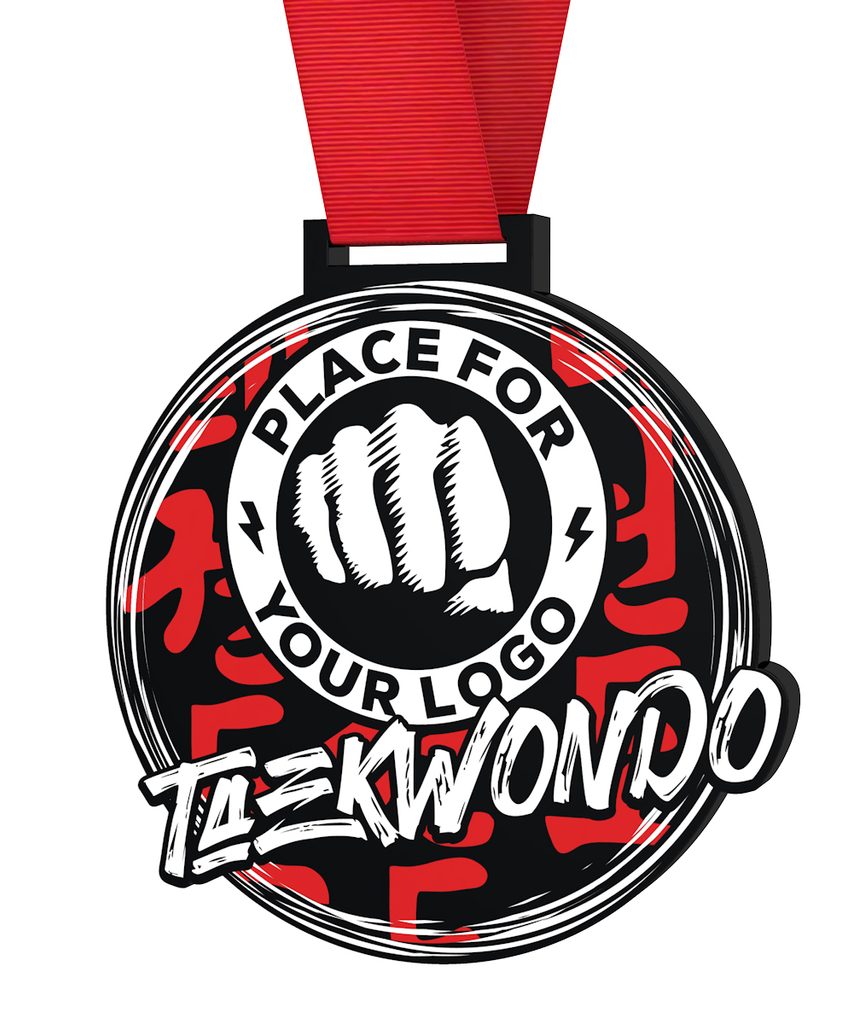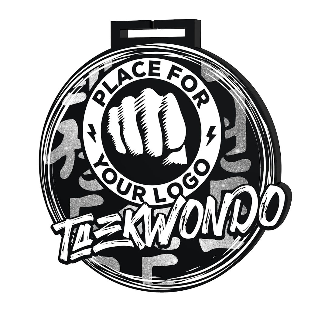 Introducing the magnificent Giant Taekwondo Black Acrylic Medal - a true masterpiece in design that is now available with your very own logo printed on it. This medal is crafted from a thick 0.3" black acrylic, and boasts a high-quality color print that is guaranteed to catch the eye. You can choose from four stunning color finishes - red, gold, silver, or bronze - and three extra-large sizes to suit your needs. The minimum order for this medal is 15x medals.