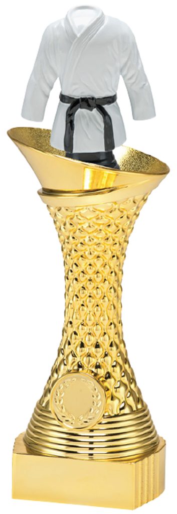 The Gold Karate Trophy with 3D Colour Top is a modern award made from high quality plastic, with a weight added for a more premium feel choose from 3 sizes 11", 10" and 9.5".