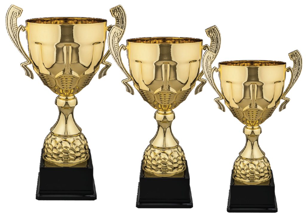 The Gold Luxury Large Cup is a luxury contemporary award. Consisting of a black weighted PVC base, with a gold plastic stem and a deep metal bowl. Comes in 3 large sizes 19.5",17", 16".