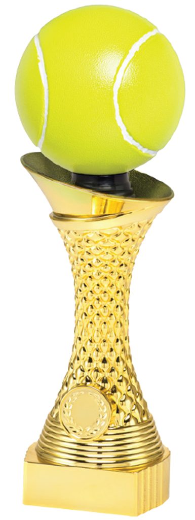 The Gold Tennis Trophy with 3D Yellow Ball is a modern award made from high quality plastic, with a weight added for a more premium feel choose from 3 sizes 11", 10" and 9.5".