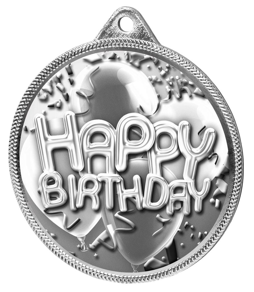 Happy Birthday Classic Texture 3D Print Silver Medal