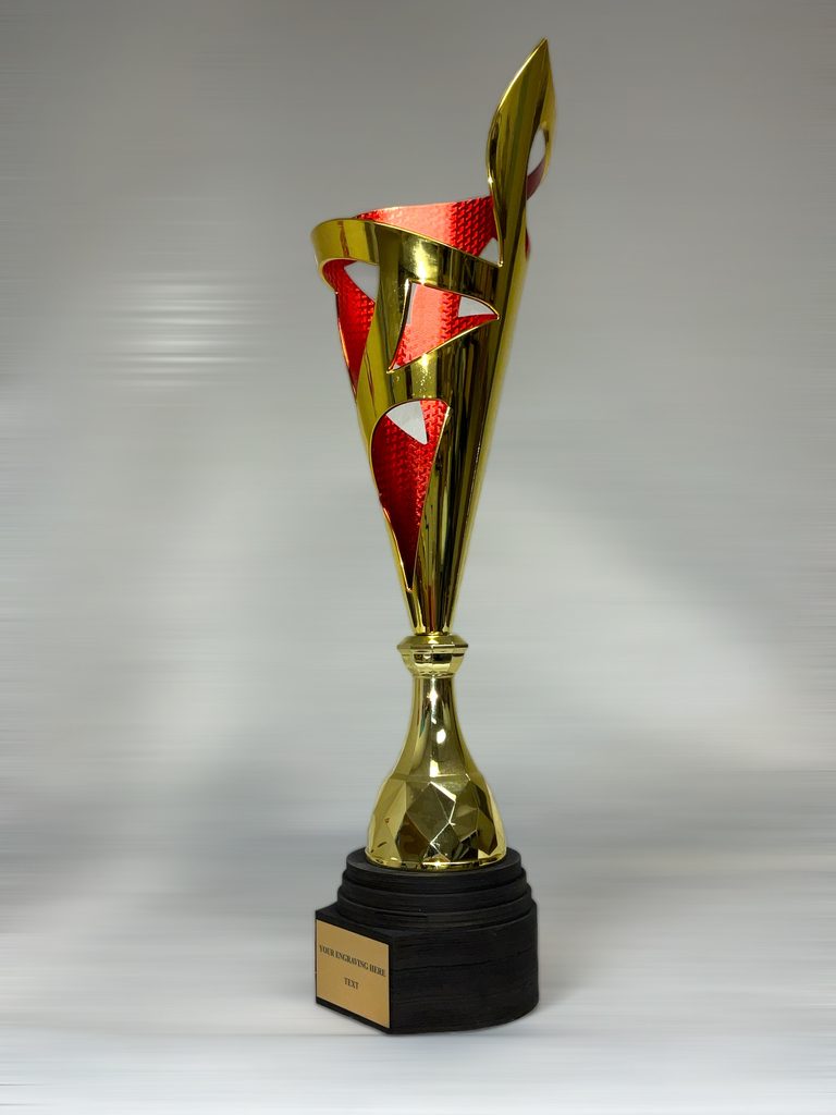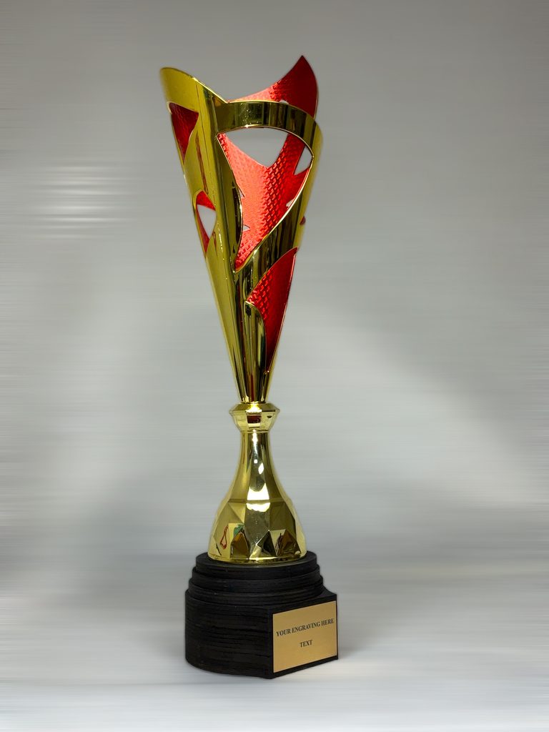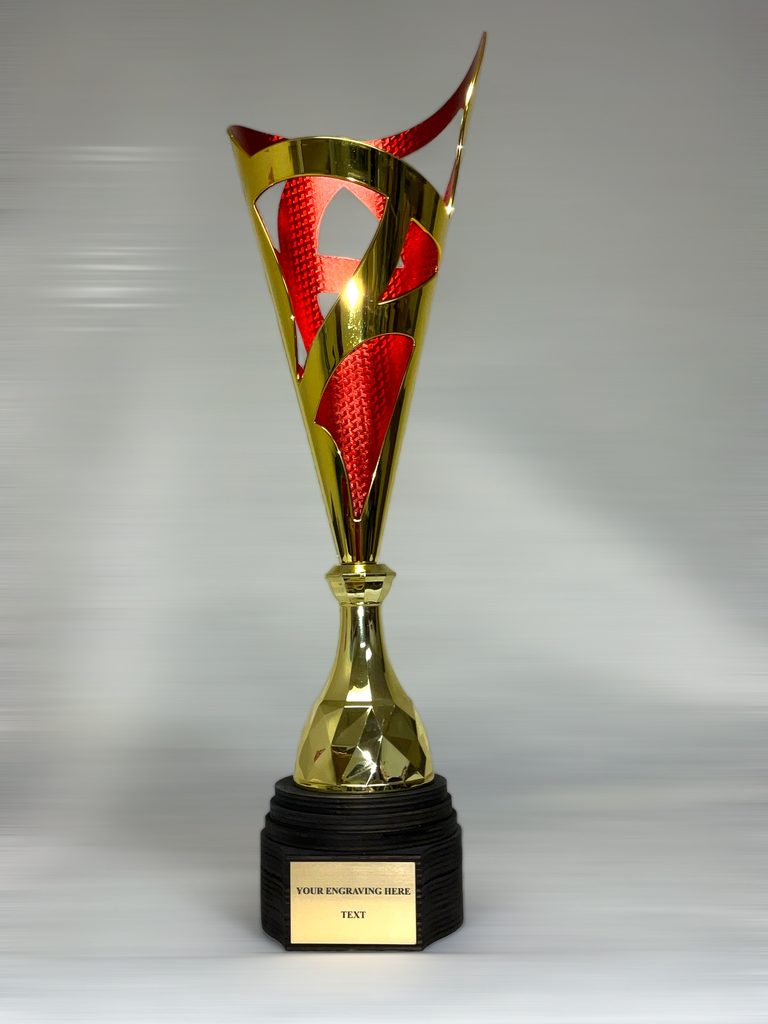 Introducing the Havana Gold & Red Laser Cup, a stunning addition to our ever-growing collection of modern awards. Crafted from high-quality plastic and elegantly mounted on a one-of-a-kind birch wood base, this trophy is a true work of art.