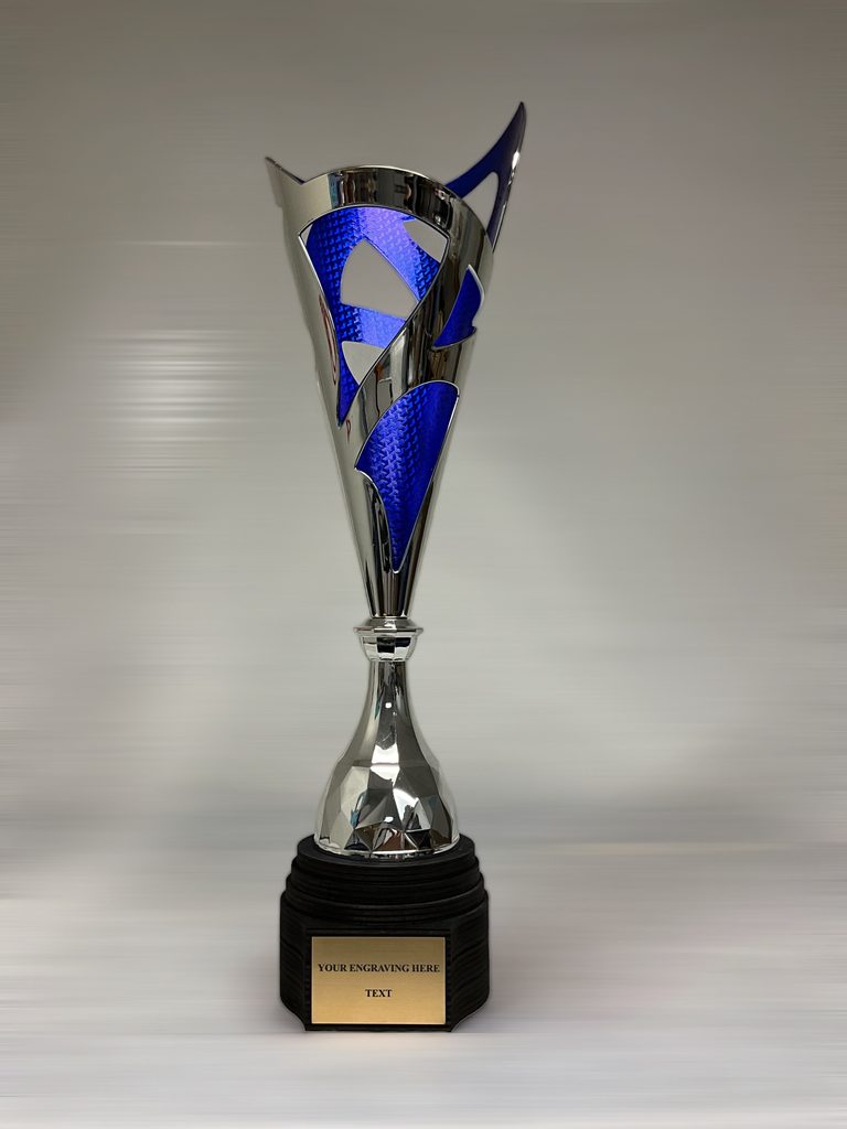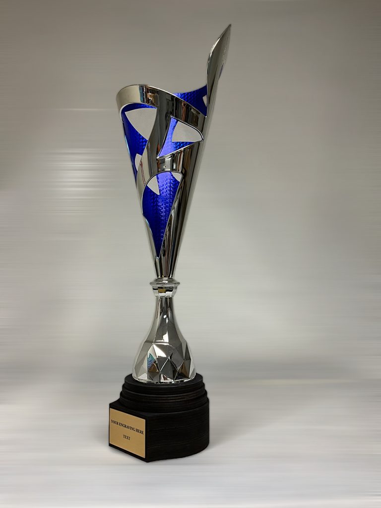 Introducing the Havana Silver & Blue Laser Cup, a stunning addition to our ever-growing collection of modern awards. Crafted from high-quality plastic and elegantly mounted on a one-of-a-kind birch wood base, this trophy is a true work of art.