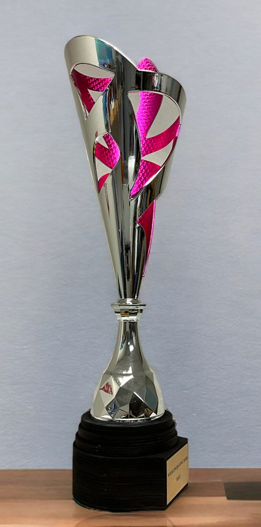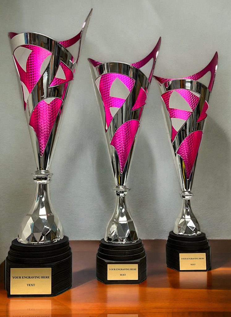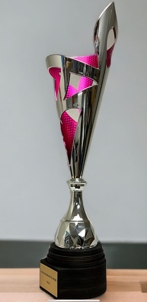 Introducing the Havana Silver & Pink Laser Cup, a stunning addition to our ever-growing collection of modern awards. Crafted from high-quality plastic and elegantly mounted on a one-of-a-kind birch wood base, this trophy is a true work of art.