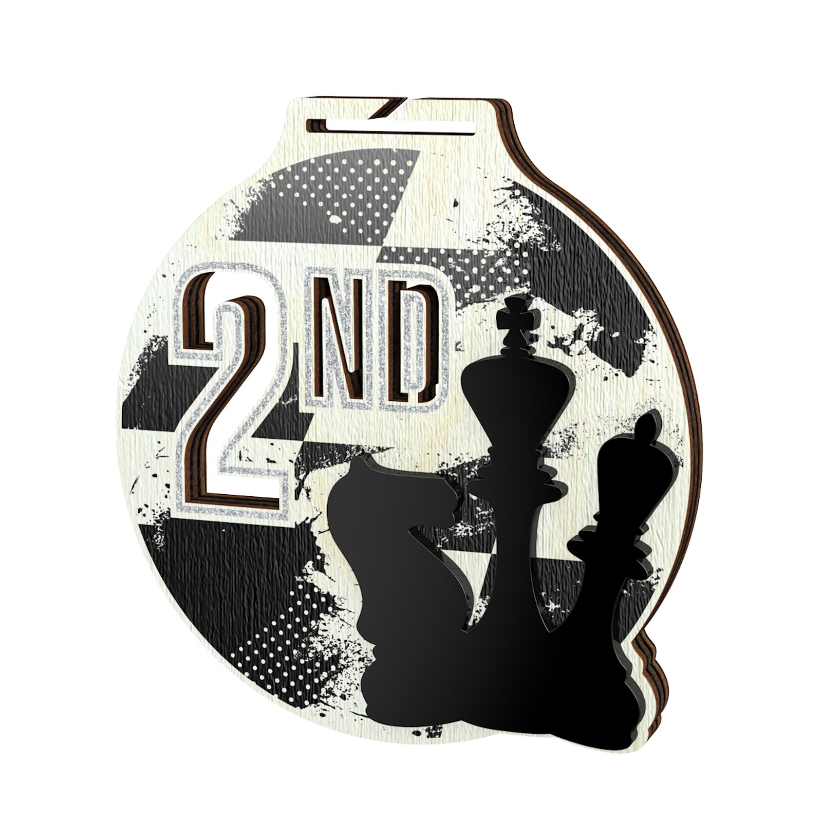 The Highgrove Fusion Chess 2nd Place Silver Medal a brand new concept design exclusively manufactured by Trophy Monster.  Made from a fusion of 0.3" thick 4ply real Birchwood and raised laser cut black acrylic. A stunning full colour print compliments a truly unique award.