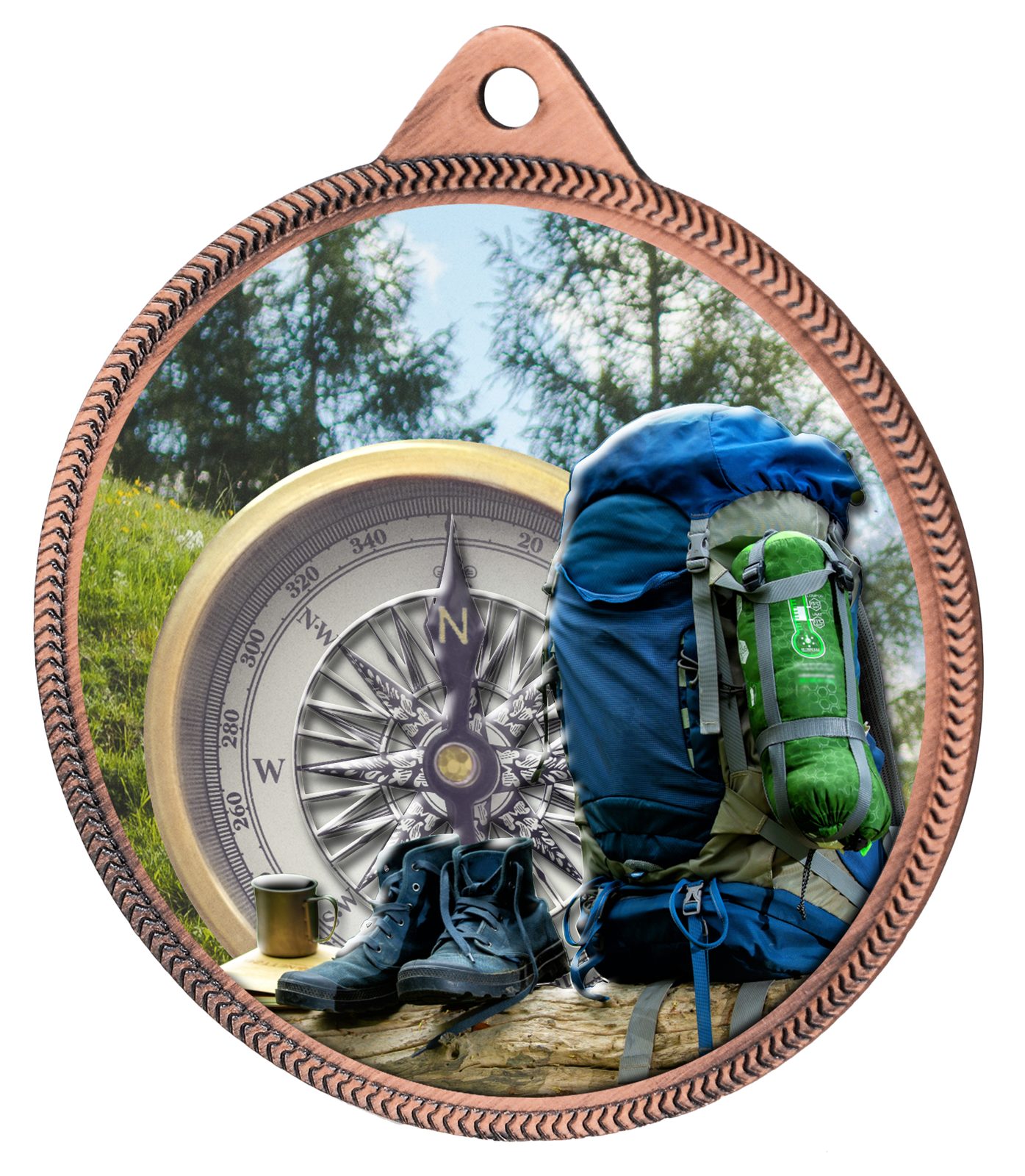 Hiking and Mountaineering Color Texture 3D Print Bronze Medal
