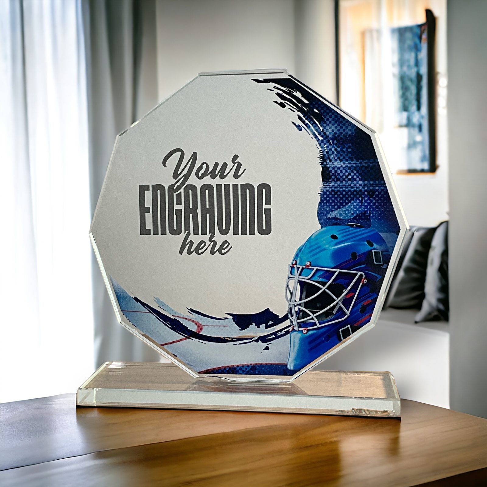 Ice Hockey Trophies Glass Awards Full Color Printed Sport & Athletics Glass Awards