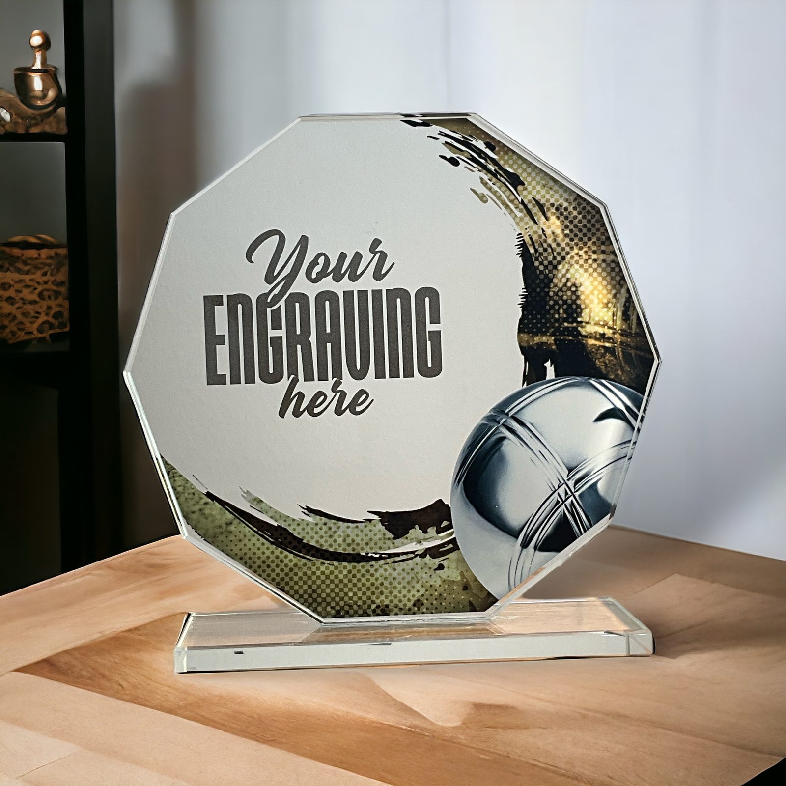 Petanque Trophies Glass Awards Full Color Printed Sport & Athletics Glass Awards