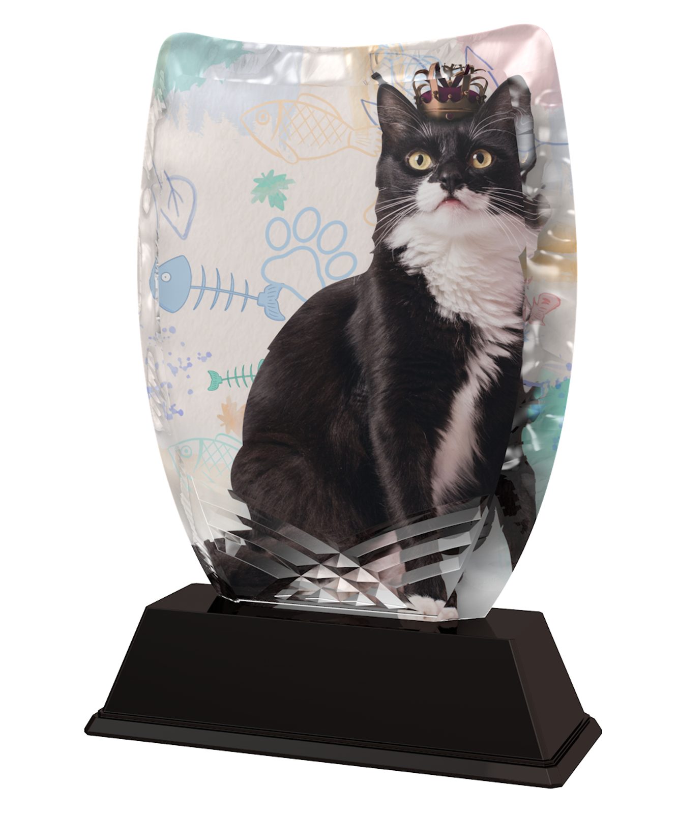 The Iceberg Cat Show Trophy is a modern style award. With superb shape this trophy comes to life with a high quality full color print on the reverse side of the 5/16"thick acrylic mounted on a black PVC base.