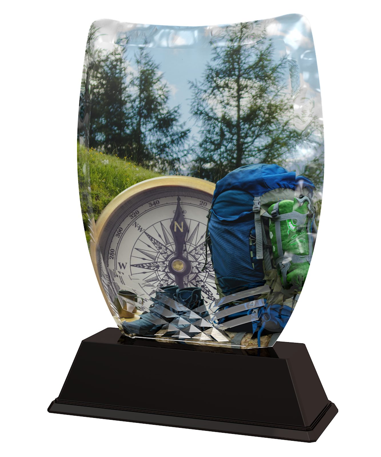 The Iceberg Hiking and Mountaineering Trophy is a modern style award. With superb shape this trophy comes to life with a high quality full color print on the reverse side of the 5/16" thick acrylic mounted on a black PVC base.