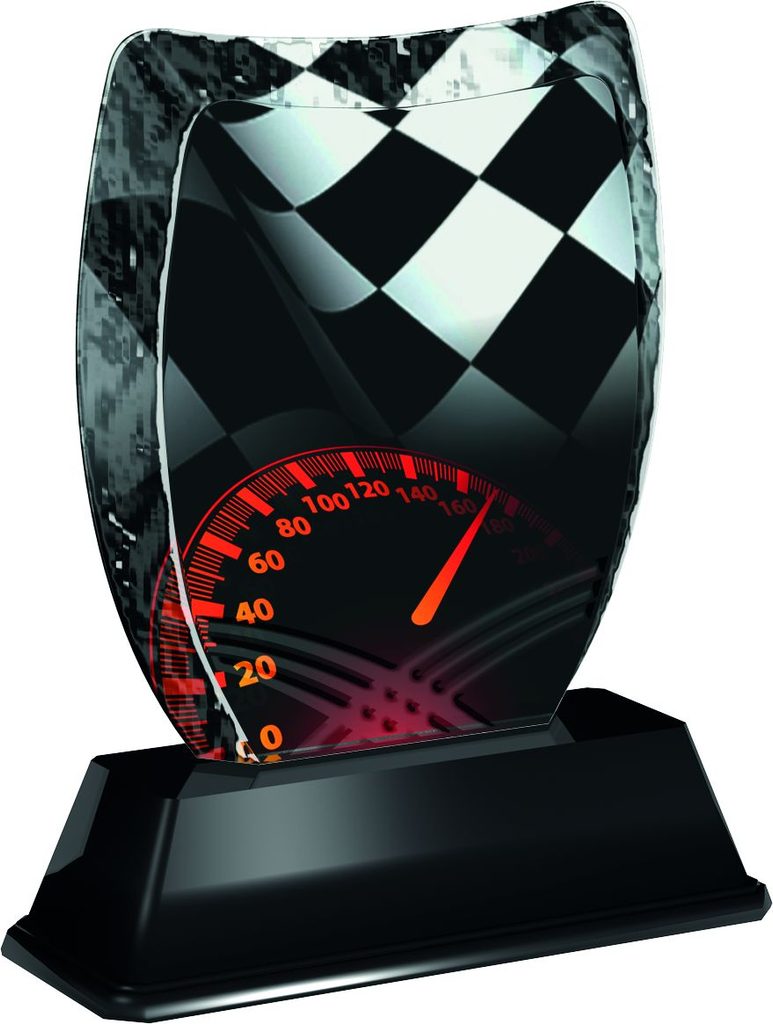 The Iceberg Motorsport Trophy is a modern style award. With superb shape this trophy comes to life with a high quality full color print on the reverse side of the 5/16" thick acrylic mounted on a black PVC base.
